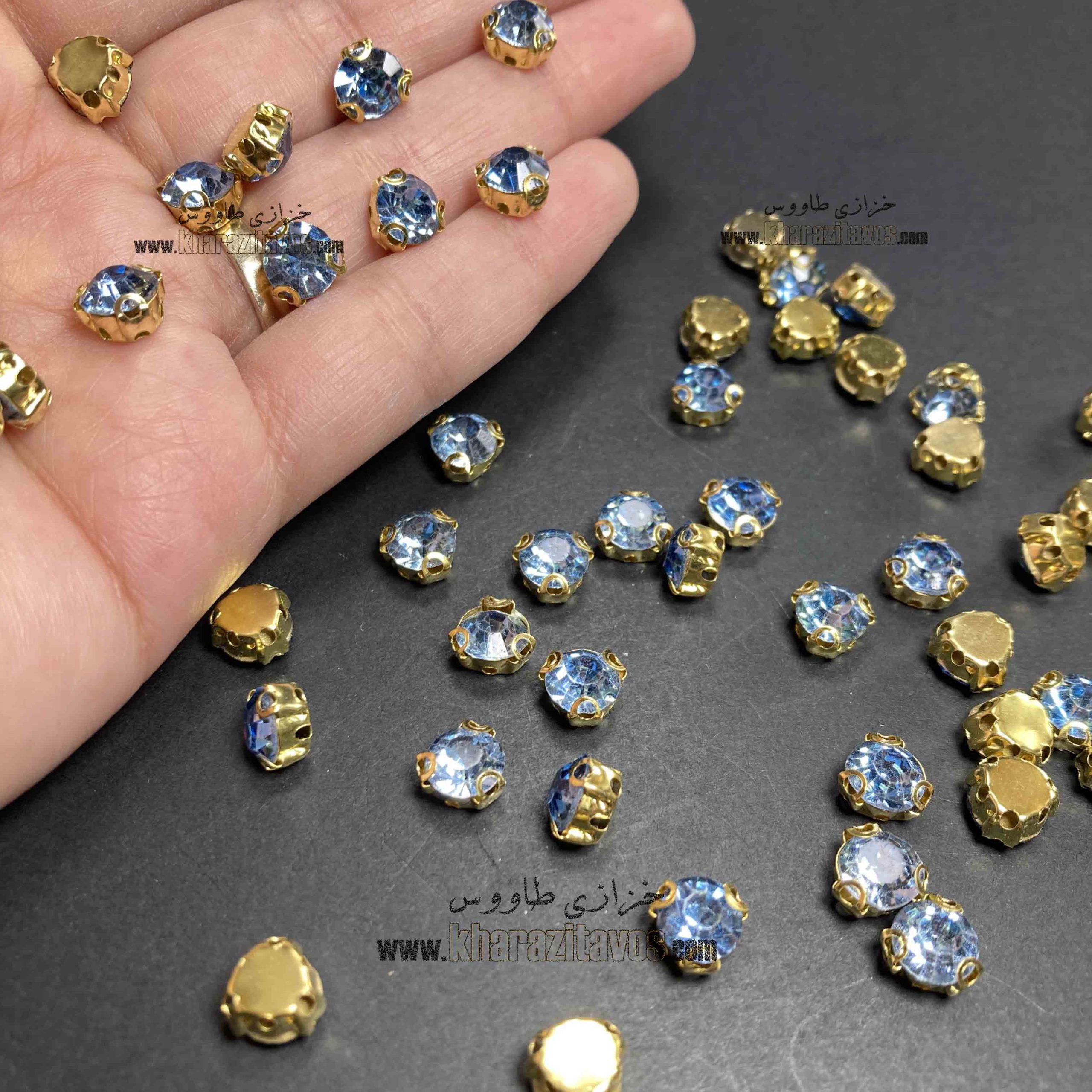 نگین پایه دار سایز 40 ( آبی آسمانی ) پایه طلایی بسته 40 عددی