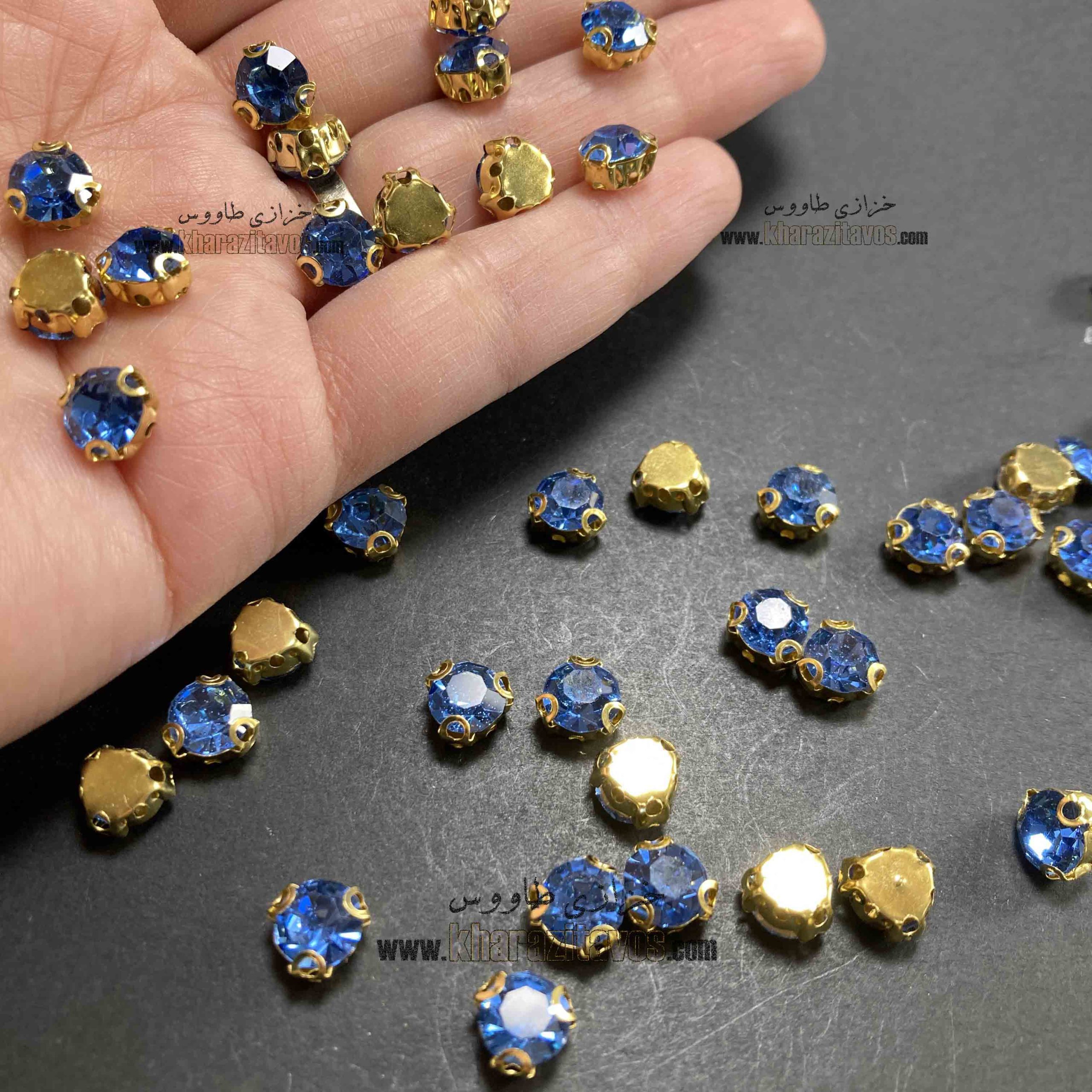 نگین پایه دار سایز 40 ( آبی ) پایه طلایی بسته 40 عددی