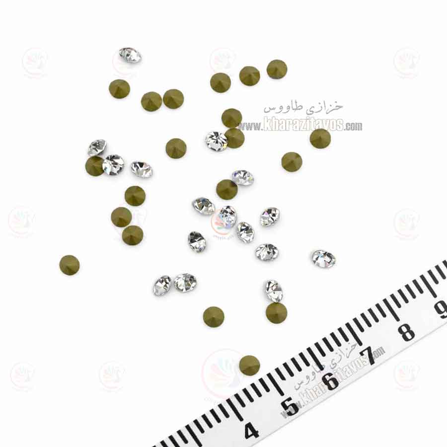 این نگین در سایزهای متنوع عرضه میشود و بهراحتی میتوان آن را متناسب با طراحیهای ظریف یا کارهای مجلسی و پرجزئیات انتخاب کرد.