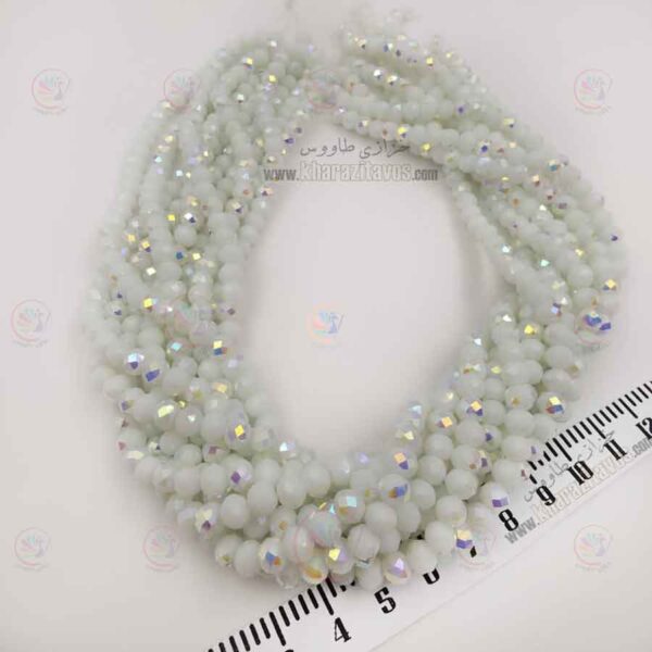 رنگ سفید گچی به دلیل خاصیت خنثی بودن، قابلیت ترکیب با طیف گستردهای از رنگها را دارد و در کنار رنگهای متالیک مانند طلایی و نقرهای یا رنگهای ملایم پاستیلی، هماهنگی و زیبایی ویژهای ایجاد میکند. جلوه لوستری این کریستال باعث انعکاس نور از زوایای مختلف شده و به طرح نهایی درخششی چشمگیر و ظریف میبخشد.