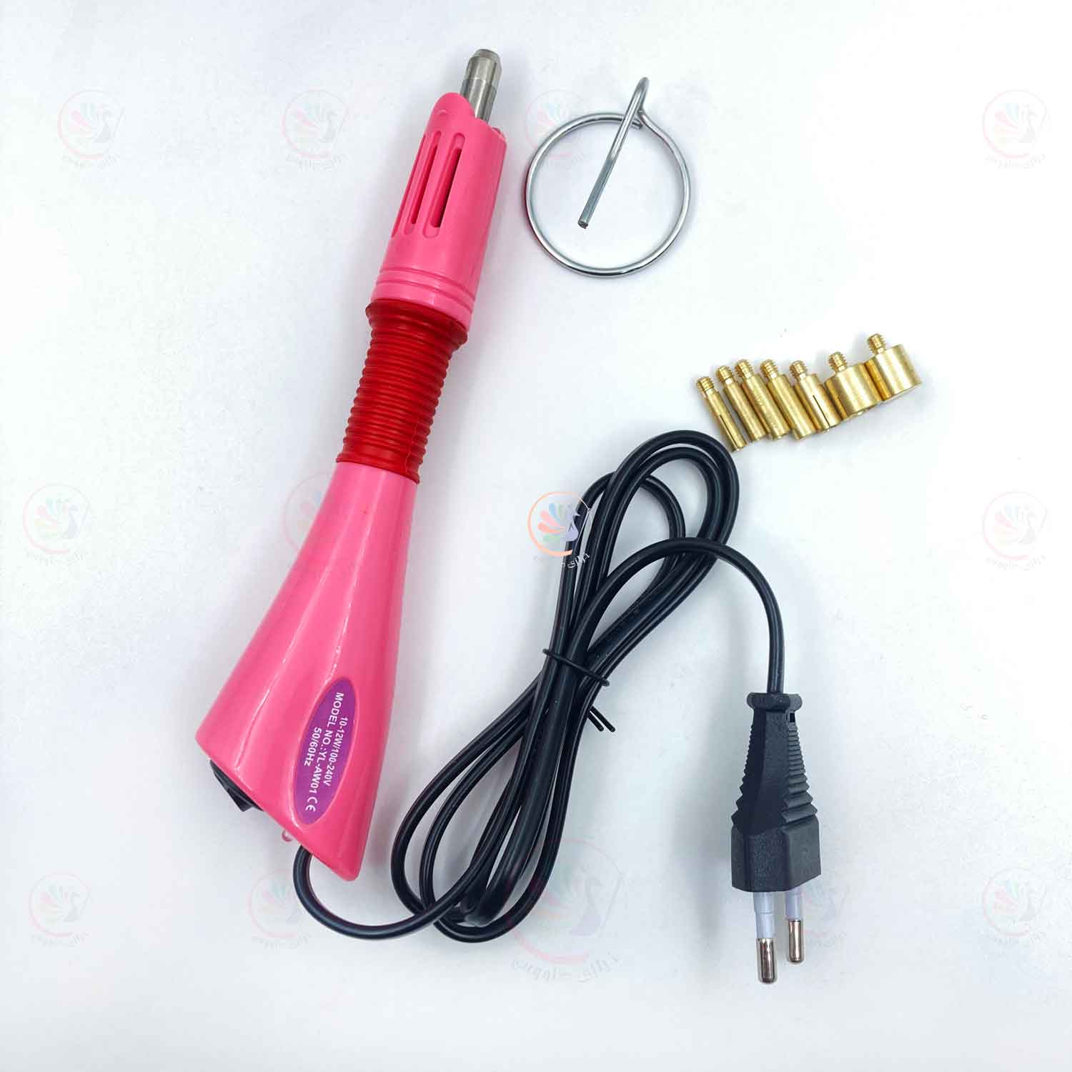 این مدل با برق ۲۲۰ ولت کار میکند و دارای چند سری برنجی با سایزهای مختلف است که هر سری مخصوص یک اندازه نگین طراحی شده تا نگین دقیقاً در جای خود قرار بگیرد و از آسیب دیدن سطح کار جلوگیری شود. جنس برنجی سریها باعث انتقال حرارت مناسب، دوام بالا و افزایش عمر دستگاه میشود.