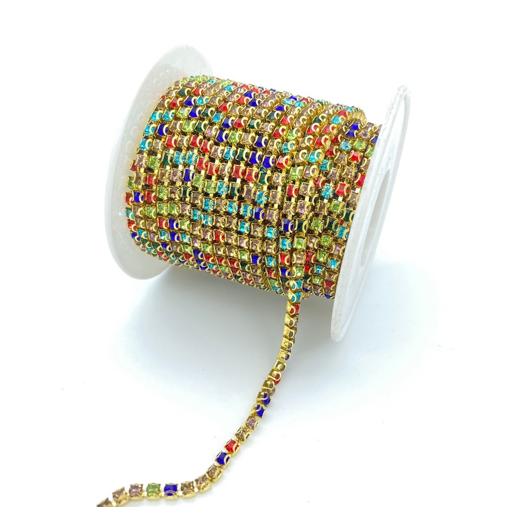 نگین متری سایز ۸ – هفت رنگ با پایه نقرهای یکی از گزینههای پرکاربرد و جذاب برای تزیین انواع لباس، تل، گلسر، کیف، کفش، وسایل تزیینی و پروژههای هنری است. این نگینها بهصورت نواری متری عرضه میشوند و استفاده از آنها در کارهای سریدوزی یا تولید انبوه بسیار ساده و سریع است.