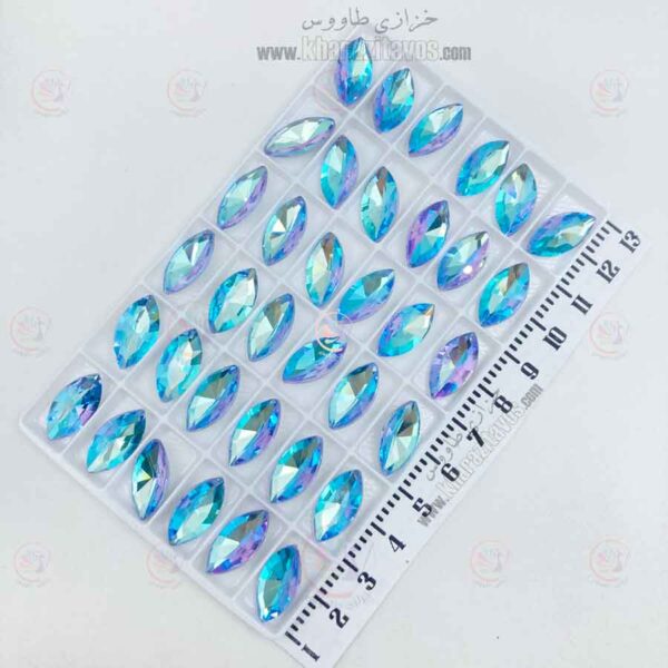 مارکیز چشمی سنگی ۹ در ۱۸ آبی – کد DF62 از نگینهای پرکاربرد و زیبا در هنر خرازی و طراحی زیورآلات است که با فرم کشیدهی مارکیزی و رنگ آبی شفاف خود، جلوهای ظریف و متفاوت به آثار هنری میبخشد. ابعاد ۷ در ۱۵ میلیمتر این محصول، آن را به گزینهای مناسب برای استفاده در ساخت گوشواره، گردنبند، دستبند، سنجاقسر، تاج و سایر اکسسوریهای دستساز تبدیل کرده است.