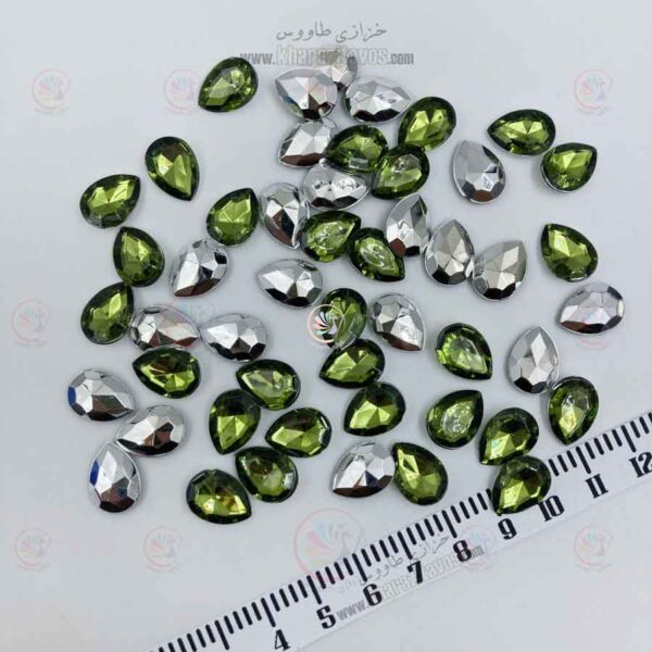 اشک پلاستیکی ۱۰ در ۱۴ زیتونی با ابعاد مناسب خود هم برای استفاده به عنوان نگین مرکزی و هم به عنوان مکمل برای دیگر سایز ها قابل استفاده است