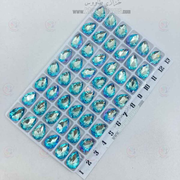 اشک سنگی ۱۰ در ۱۴ آبی – کد DF62 از نگین‌های زیبا و کاربردی در هنر خرازی و ساخت زیورآلات است که با فرم اشکی و رنگ آبی شفاف خود، جلوه‌ای خاص و چشم‌نواز به طرح‌ها می‌بخشد. ابعاد ۸ در ۱۳ میلی‌متری این محصول، آن را به انتخابی مناسب برای استفاده در طراحی گوشواره، گردنبند، دستبند، سنجاق‌سر، تاج و سایر اکسسوری‌های دست‌ساز تبدیل کرده است.