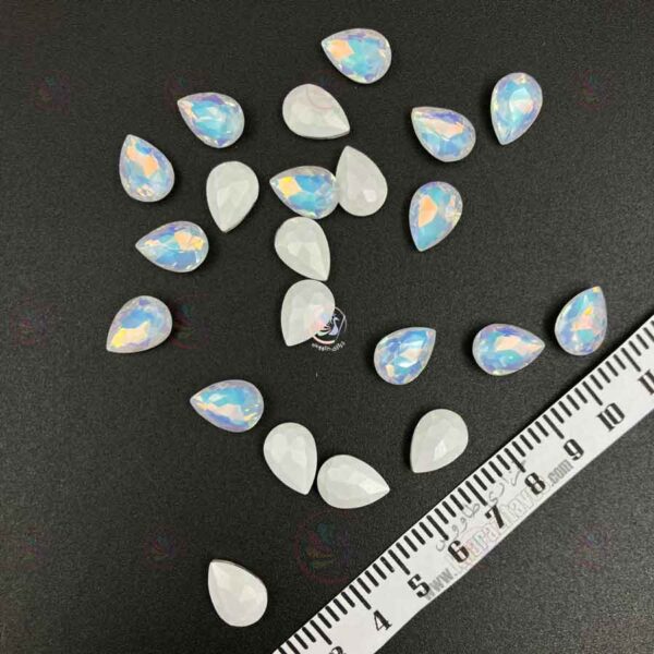 فرم اشکی کلاسیک در ابعاد ۱۰ در ۱۴ میلیمتر، اندازهای مناسب و متعادل برای ساخت گوشواره، آویز گردنبند، سنجاقسینه، تلسر، تاج یا تزئین لباس، کیف و اکسسوریهای خاص است. این فرم هم از نظر بصری چشمگیر است و هم بهراحتی در انواع قاب یا پایه نصب میشود.
